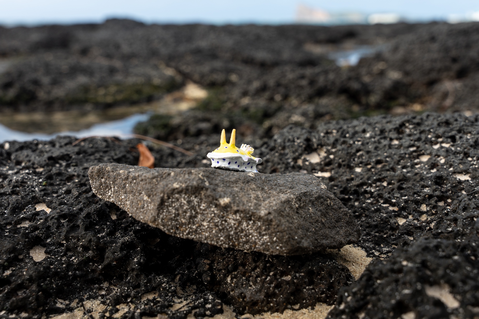 Known to divers as the “variable neon slug,” Nembrotha kubaryana is a true underwater jewel, and this miniature sculpture celebrates its bold colors and elegant shape.