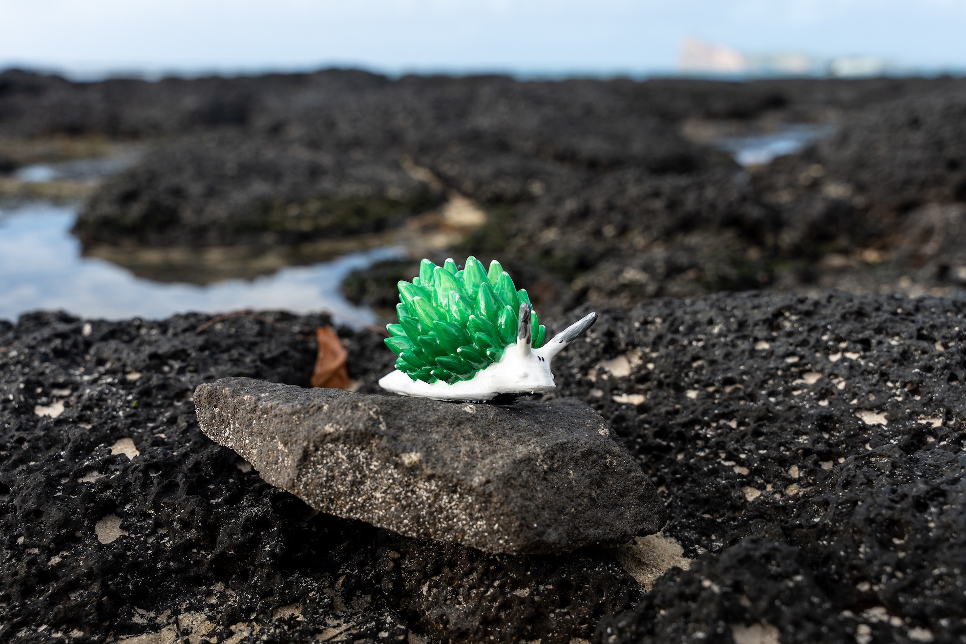 Often nicknamed the “leaf sheep,” Costasiella species are famous for their bright green bodies, soft leaf-shaped cerata, and expressive little face. This miniature sculpture captures their gentle form and playful appearance, carefully brought to life through detailed hand painting.