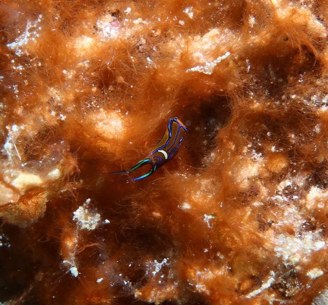 Fun Fact: Chelidonura hirundinina has a distinct forked tail, resembling a swallow's tail, making it easy to spot among the sand and algae.