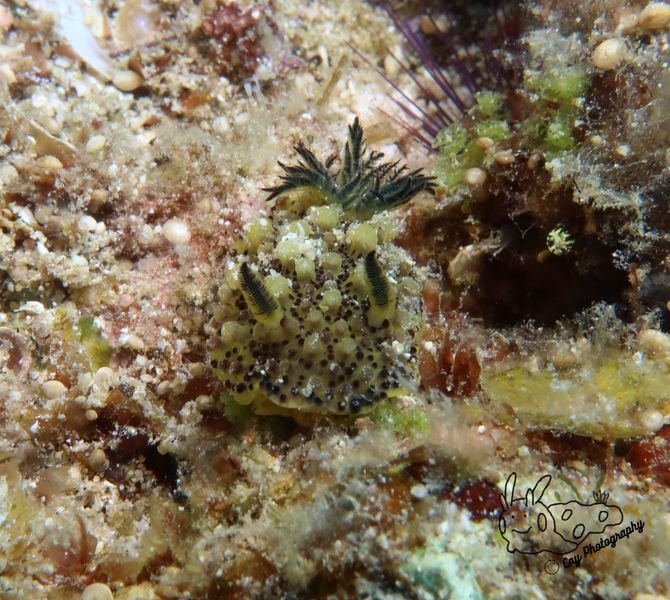 This striking dorid nudibranch is typically pale to bright yellow, with a broad, flattened mantle and a spongy texture that blends seamlessly with the reef floor. It’s a mystery waiting to be unraveled by keen-eyed divers and marine biologists!