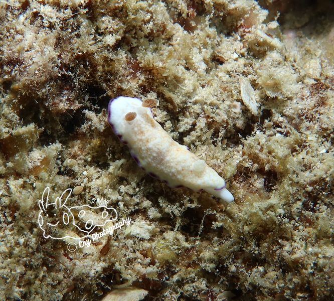 Fun Fact: Goniobranchus alius’s velvety white mantle, often edged with pale yellow and purple lines, makes it a real showstopper among coral reef nudibranchs!