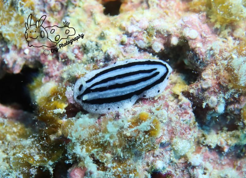 Fun Fact: Phyllidiopsis xishaensis is distinguished by its soft, pale body with unique black to dark purple lines and small tubercles, making it a subtle but striking presence on the reef.