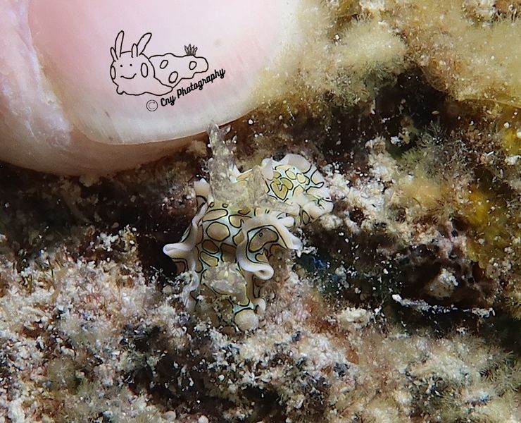 This tiny but dazzling sea slug drifts gently across sandy patches and rubble zones, a vivid splash of color in the sun-dappled reef shallows.