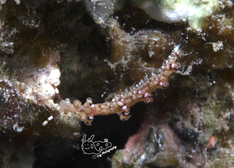 Fun Fact: Samla riwo’s translucent body adorned with bright orange tips and subtle white accents make it a mesmerizing find, blending delicately among the reef’s branching invertebrates.