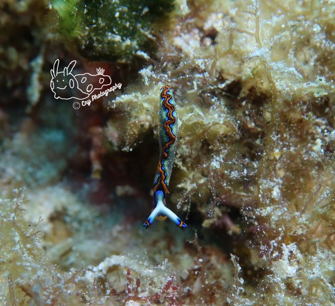 Fun Fact: Thuridilla sp.1 is known for its soft blue-green body with fine white to yellow lines, blending perfectly with the algae and seagrass it calls home — a gentle, solar-powered reef wanderer!